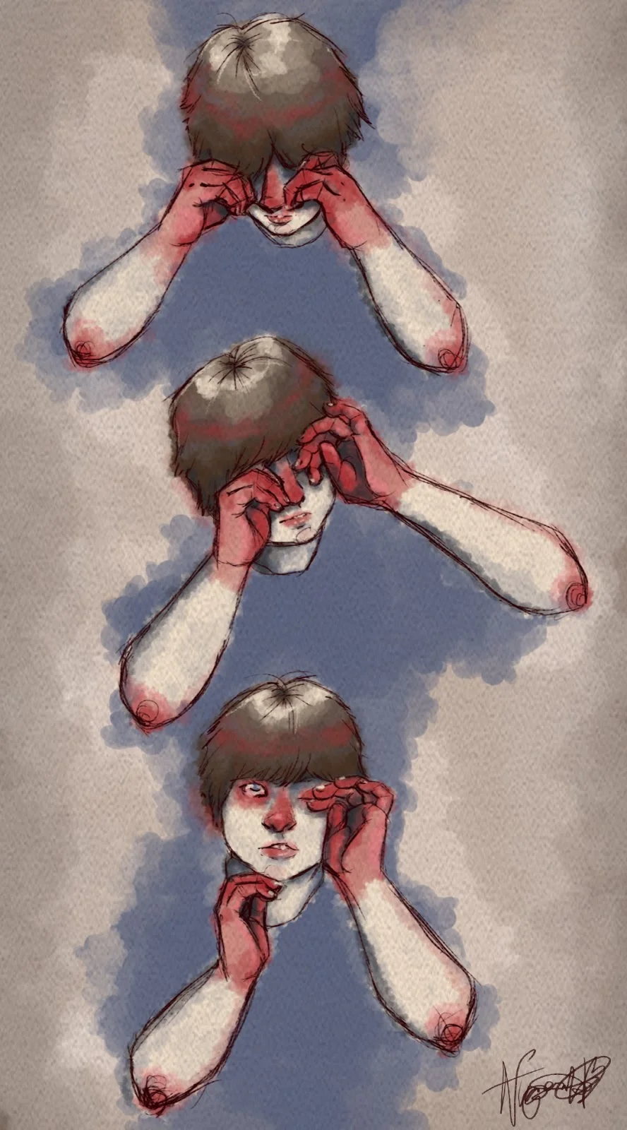 Created around the summer of 2013, dedicated to my bad habit of rubbing my eyes when I'm cranky and tired. My allergies were acting up around that time so rubbing them seemed like a brilliant option at the time. While I highly discourage this to my audience, having swollen, red eyes sure looked cool at that moment.